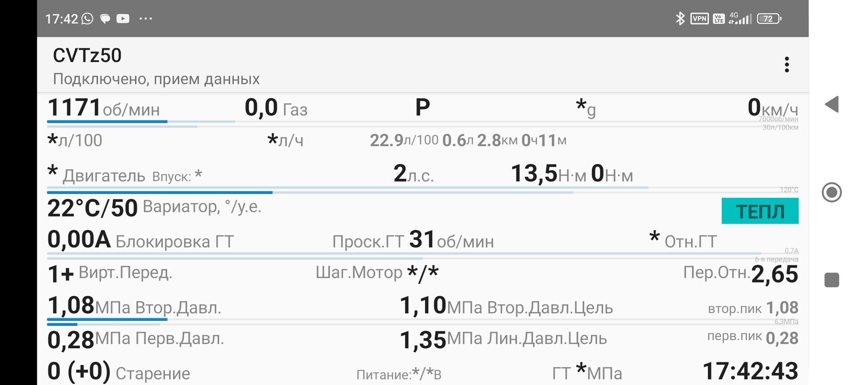 Ну и все параметры работы вариатора в пределах допустимых значений: