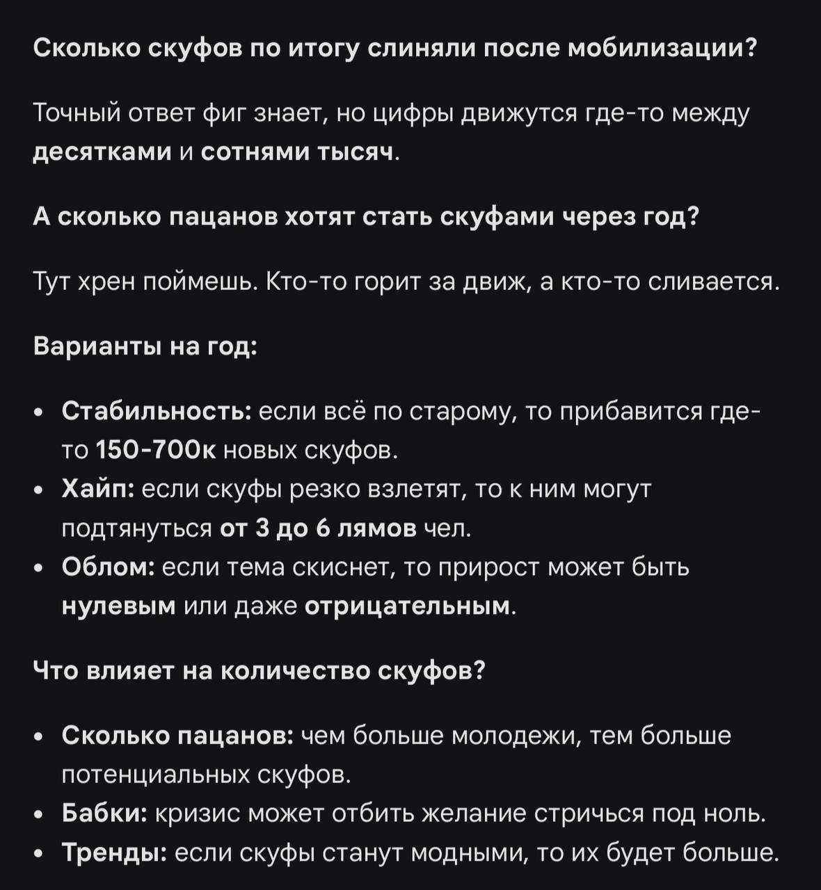 Aleksha92 Юмор Сколько скуфов по итогу слиняли после мобилизации? 1 год назад [моё] Юмор Скуфы Тег в виде гномика Искусственный интеллект ChatGPT Длиннопост Ещё 0