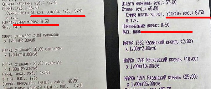 Итак - общая стоимость марок 37 рублей (осталась прежней), дополнительные услуги - наклеивание марок 9,50 рублей, а вот она то собственно и подорожала...