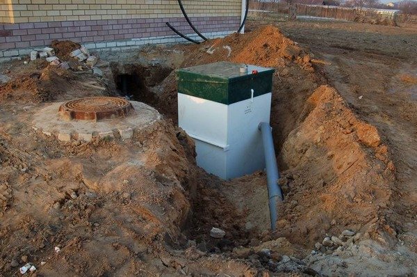 Первым делом был вырыт котлован под сам септик и прорыта траншея от него к дому.