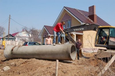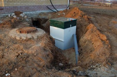 Поставили на место септик, соединили выход с трубой, а вход с домом.