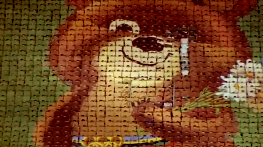 Всего на трибуне с живым панно сидело 4,5 тысячи специально подготовленных волонтеров, большей частью набранных из солдат – в их активе были цветные щитки, шапочки, шарфы и накидки, с помощью которых складывались картины, видные всему стадиону.