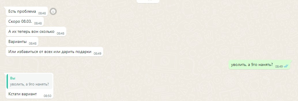 20 Dubkov Скоро 8 марта 2 года назад переписка с директором [моё] 8 марта - Международный женский день Юмор Переписка WhatsApp Скриншот Ещё 0