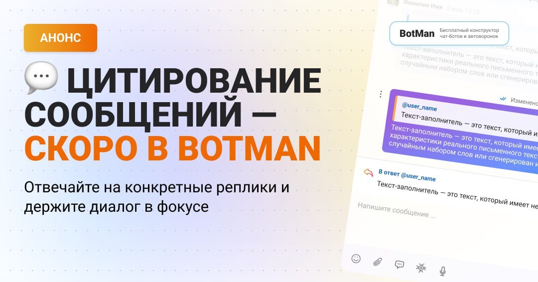 Поэтому в Botman скоро появится новая функция — цитирование сообщений прямо в чате .