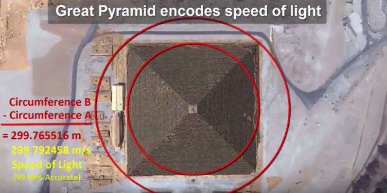 Только метрическая система появилась через много тысяч лет после постройки пирамид. Сколько скорость света в локтях? Или шагах? Или какая-то там была типовая единица измерения расстояния в Древнем Египте? Скорость света - это физическая величина, но метр - это наше чисто умозрительное определение, ни что не мешает построить метрическую систему, в которой метр будет длиной в 1.5 метра и никаких проблем не будет. Ну и секунда то же относительно от балды - это просто 1/365.25/24/60/60 оборота земли вокруг солнца, и это арабы придумали вроде сильно позже. То есть, короче, значение скорости света в текущих метрических величинах - это чисто наше обозначение. Даже если бы египтяне знали скорость света, или им инопланетяне/рептилоиды её рассказали, то это была бы другая цифра.