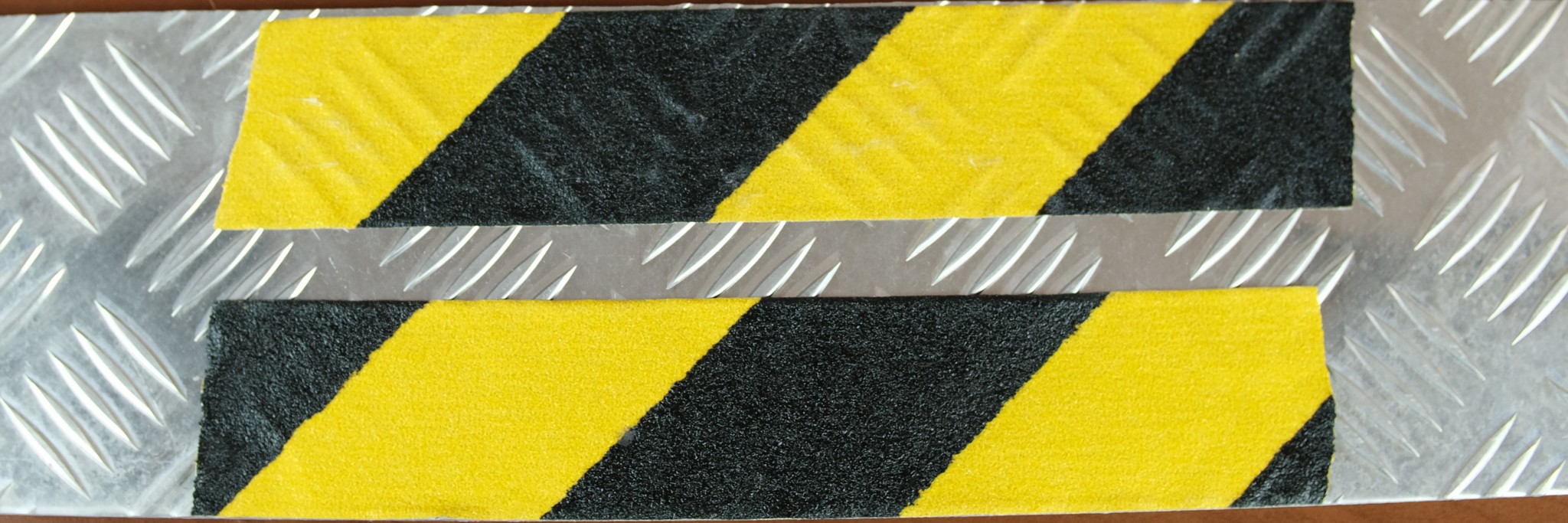 При проектировании лент производитель столкнулся с одним неприятным нюансом. Нанести ленту на плоскую поверхность можно без проблем. Толщины клея хватает. Но ведь большинство трапов сделаны из рифленого металла. Вот, например, алюминиевый рифленый лист, квинтет. Если мы попытаемся нанести обычную ленту, нас ждут облом. Она не будет полностью прилегать к поверхности из-за рифления. Под ленту забьется грязь, клей не сможет держаться на малых участках и она оторвется.
