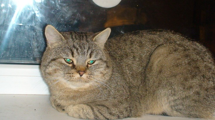 В общем, регулярно каждый год с ноября-декабря наблюдается поток бездомных кошек и иногда собак. Собаки на мой участок пробраться не могут, а кошки запросто. И вот однажды я выставила на крыльцо суп, который хотела вылить своей собаке. Выставила и забыла. Суп замёрз, а через несколько часов я увидела, что этот суп пытается грызть здоровенный серый кот. Мне кота стало жалко, и я отрыла ему дверь. И он вошёл в дом. Это был реально большой кот, смесь с шотландцем. В общем, так он у нас и остался.