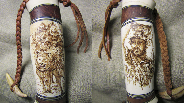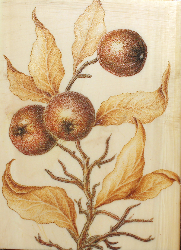В продолжение к предыдущим двумчастям, добавлено видео, на котором можно увидеть сам процесс работы над рисунком в различных техниках - ручное скримшоу (традиционное, иглой), скримшоу пневмогравёром и пирография.