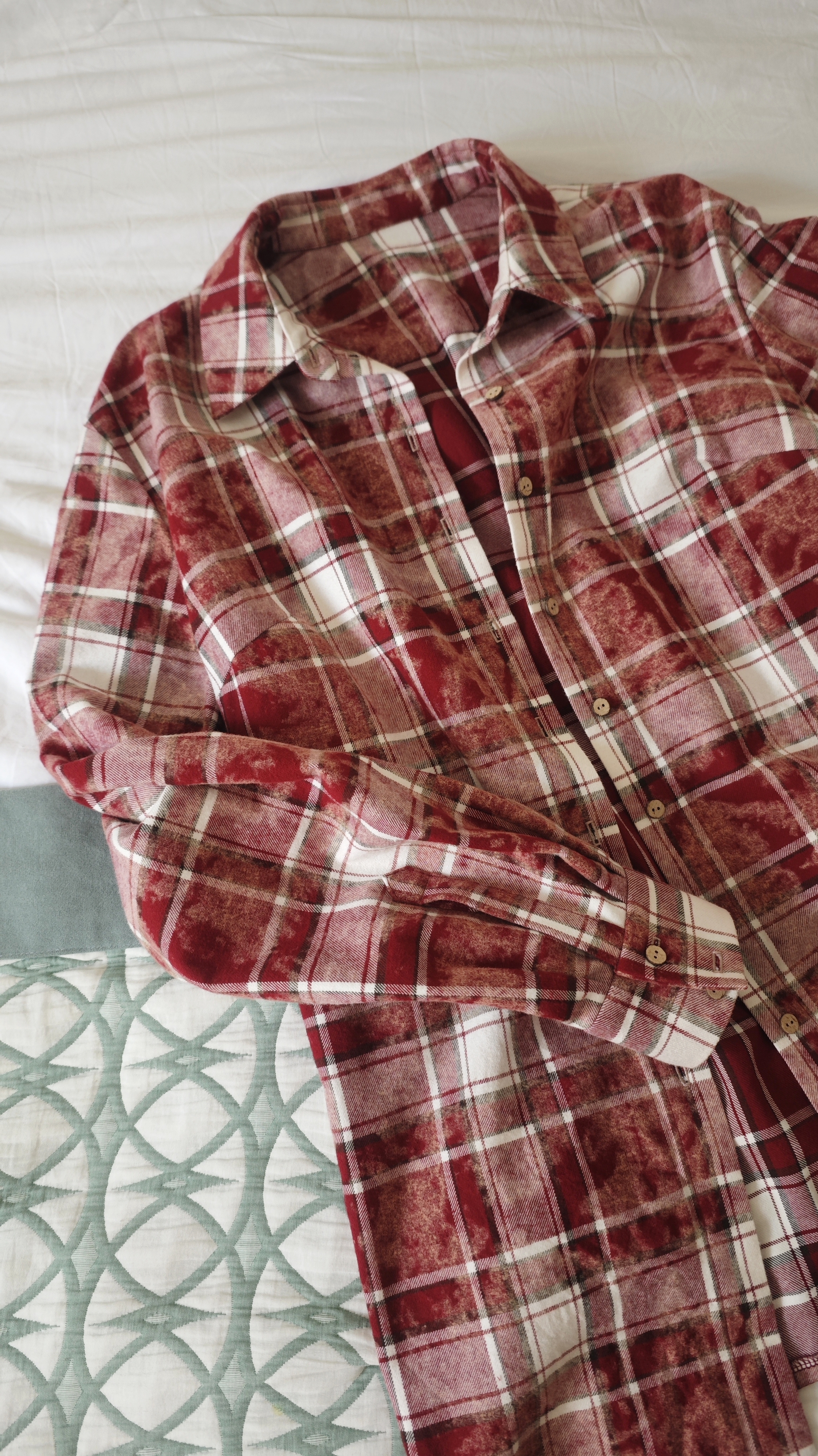 Тёплый футер был отодвинут "на потом" и за несколько дней вечеров до вылета я сшила себе крутую рубашку из мягкого хлопкового фуле с пуговками из кокоса.