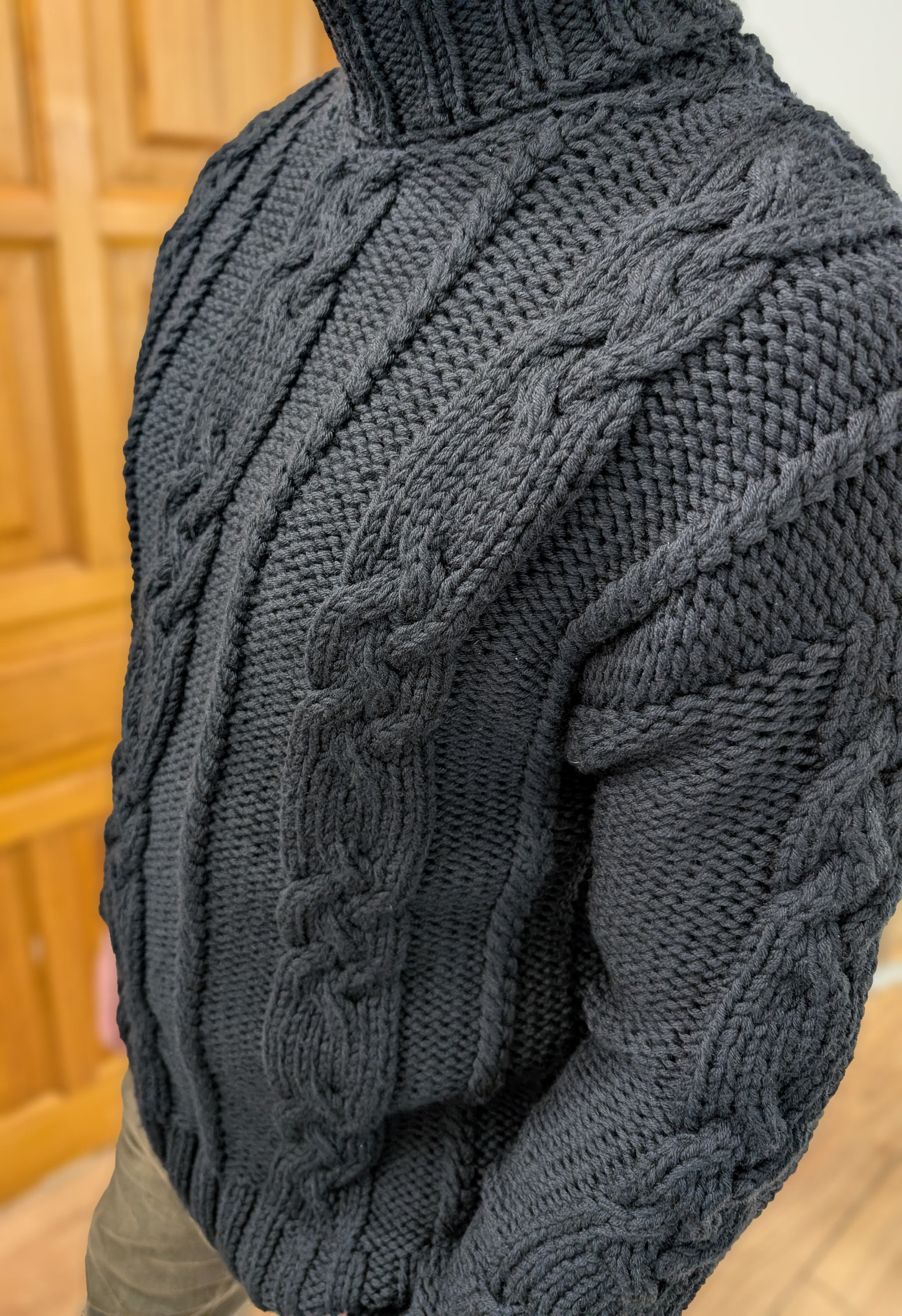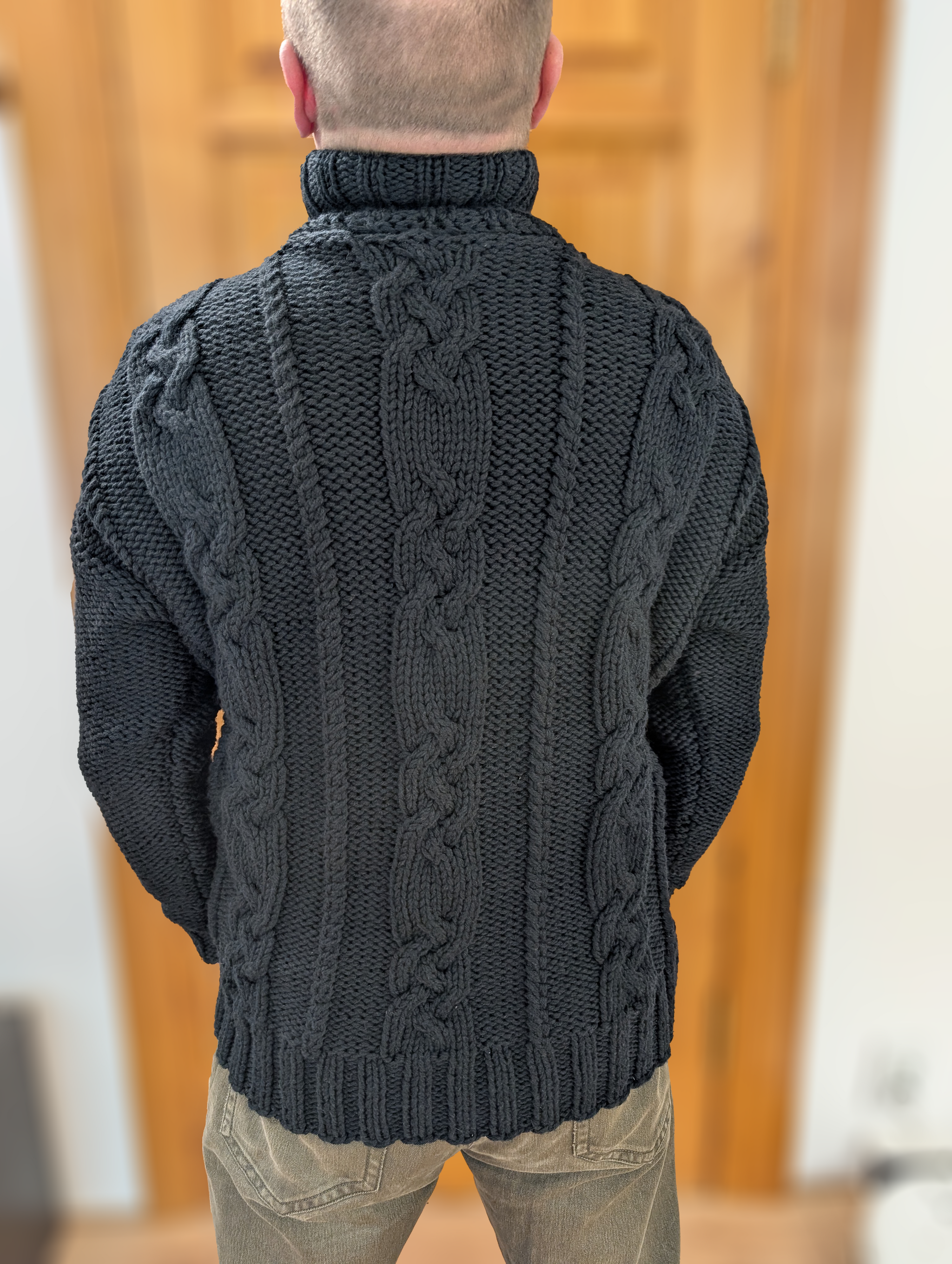 Свитер получается абсолютно неколючий, очень теплый, толстый и тяжелый. Есть нюансы в стирке, но там ничего страшного - стирать в мешке для стирки на режиме шерсть и сушить горизонтально.