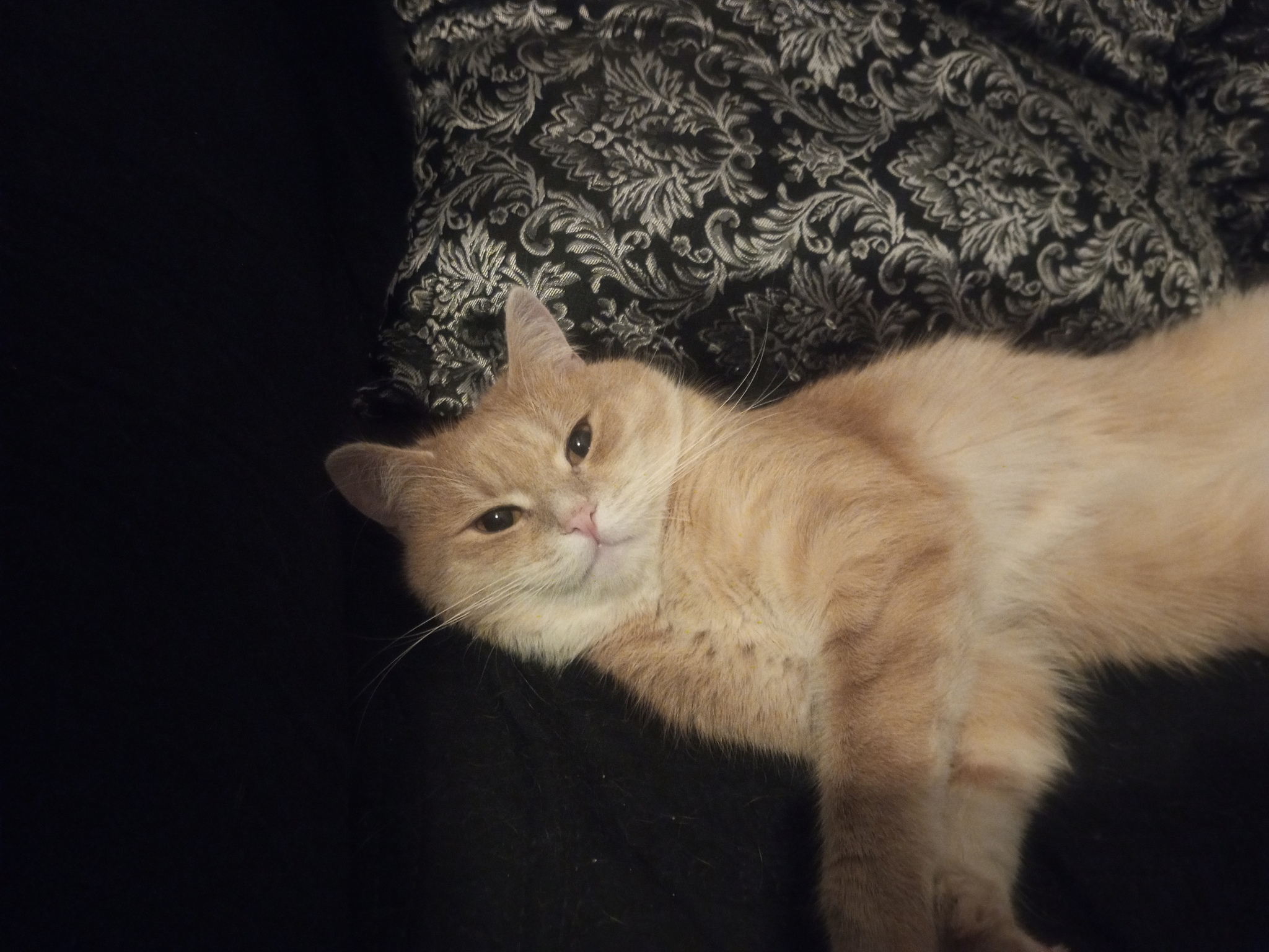 Кот спал. Пытаюсь сфоткать. И в ответственный момент, эта рыжая морда открывает глаза.