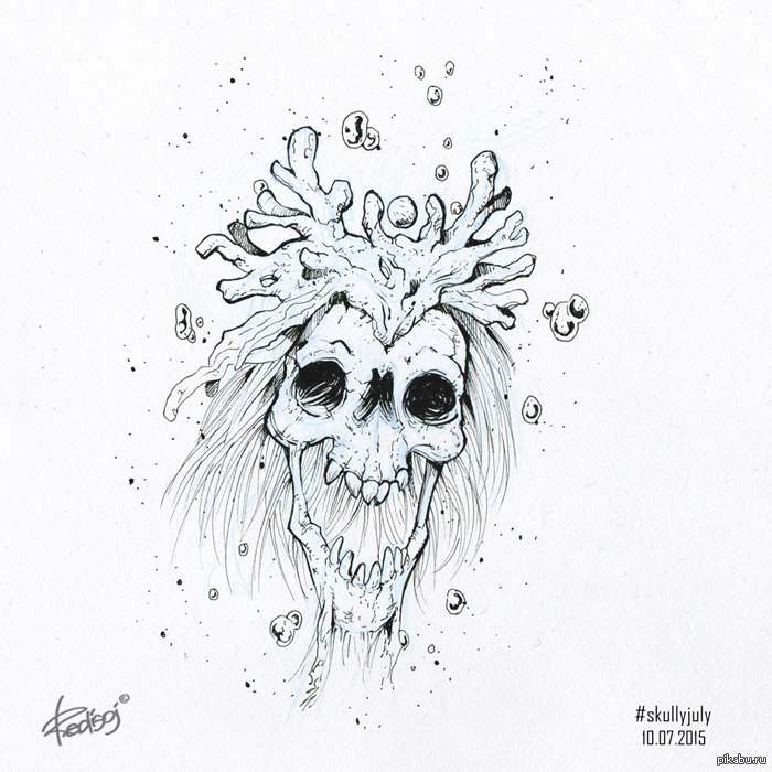 45 redisoj Skullyjuly 2015 - День 10 10 лет назад челлендж "Skullyjuly", Июль = 31 череп [моё] Skullyjuly Redisoj Череп Рисунок Эскиз Эскиз татуировки Океан