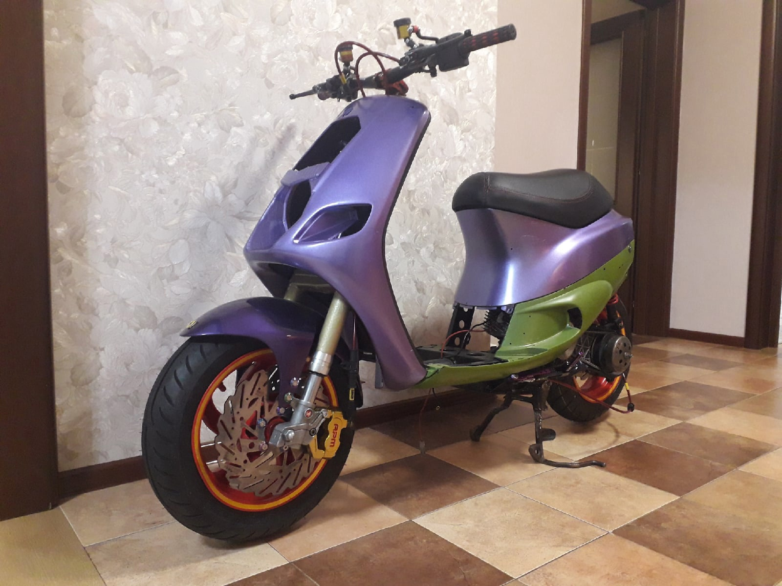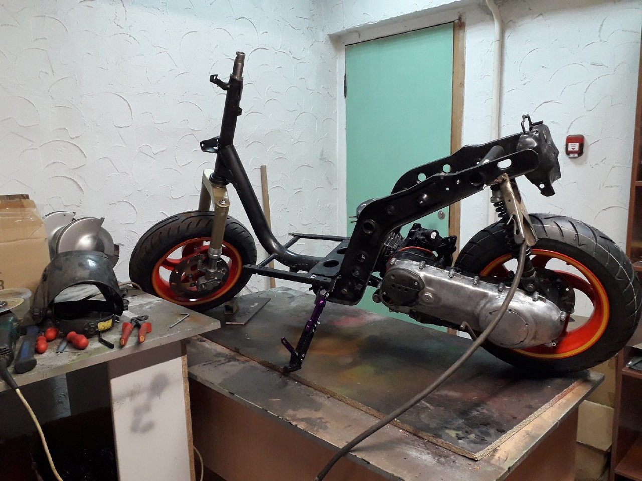 С новой вилкой скут стал слишком высокий, как минимум это не красиво. Вилку разбираю и дорабатываю, попутно обслуживаю.