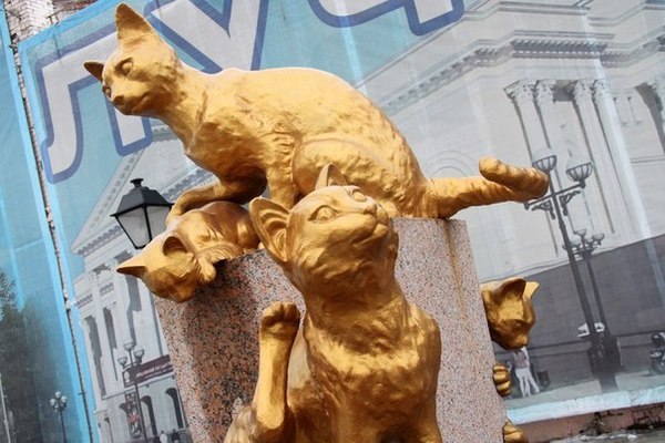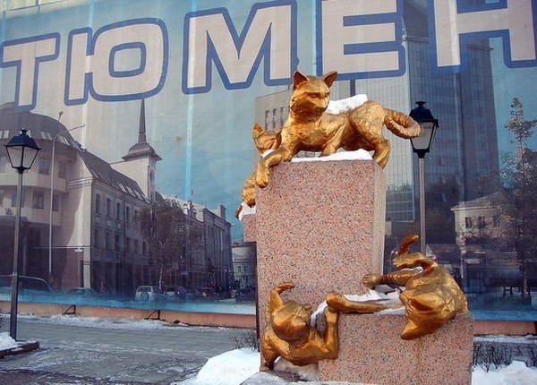 Сквер Сибирских кошек – это необычное место, которое стало достопримечательностью Тюмени. Здесь установлено двенадцать скульптурных композиций кошек, которые вылиты из чугуна и покрыты золотой краской. Автором таких довольно необычных кошачьих статуй является архитектор Марина Альчибаева.