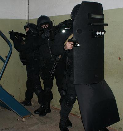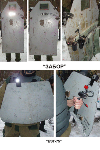 Светодиодные фонари. Как я понимаю нужны для дезориентации противника. У некоторых щитов просто светодиодные полоски. Ведь когда работает спецназ немаловажная часть работы - психологическая атака. Крики, выстрелы, свет, шум. http://strikeball-for-all.ru/3662-5547-thickbox/5-.jpg