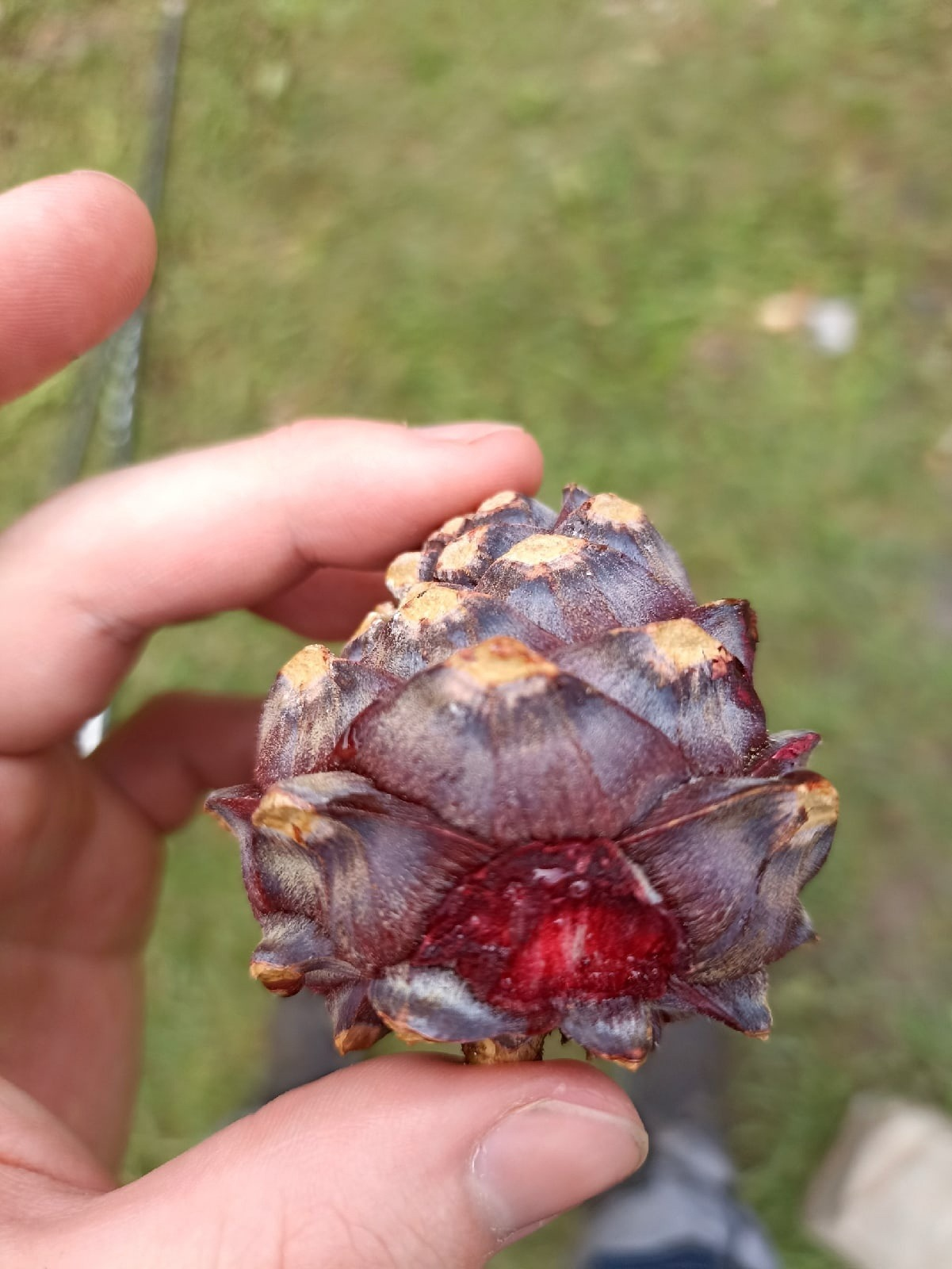 Гид заметил ёлку и приступил чавкая кушать, как он назвал, кедровые шишки, я одну попробовал, на вкус как шишка, мне не зашло.