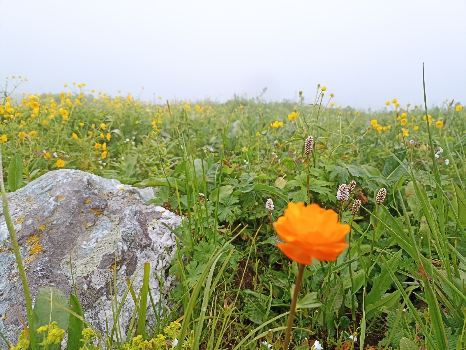 Далее гид осознал, что мы, на удивление, не там где надо и дальше пройти никак. Мы начали подниматься вверх по крутому бурелому в этой траве. Что было также неимоверно сложно. Мы шли со скоростью 15 шагов в минуту. После кругов ада этих страданий, которые, как казалось, длились вечность и никогда не закончатся, мы вылезли на человеческую тропу. Дальше было достаточно нормально, не считая усталости и накопленных болей. Вышли на верх, перекусили. Стало очень холодно, всё-таки высота и ветер. К слову, кисти с тыльной стороны впоследствии обгорели (крем от обгара сполз с потом и дождём), дальше даже в жару я был в рабочих перчатках, то есть полностью закрыт от солнца.