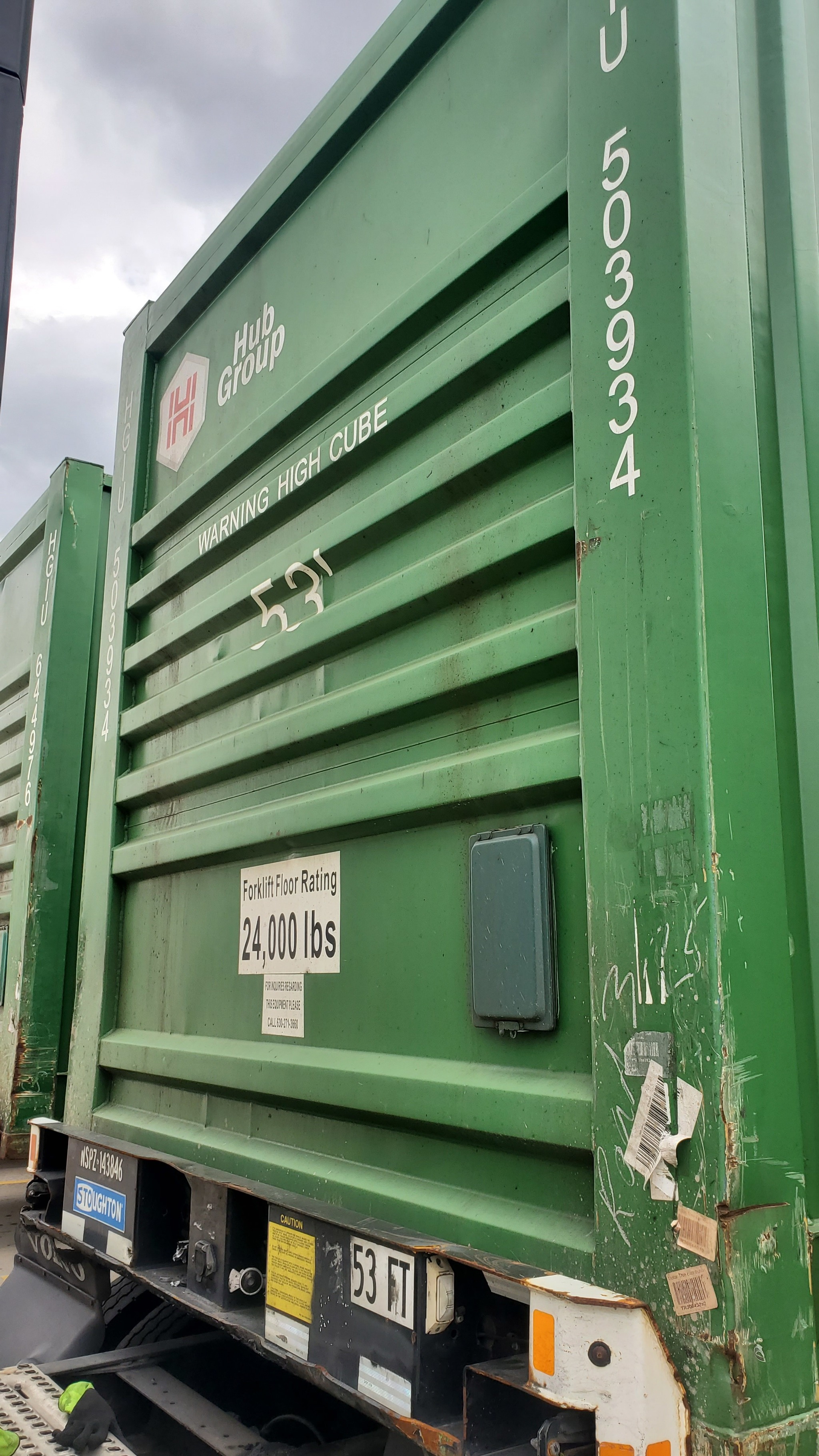 Погрузчик привез мой контейнер быстро, водрузил на раму и я выехал на свободное место закрепить замки. (Здесь можно почитать про погрузчики в терминалах.) Сфоткал номер контейнера диспетчеру, заглянул внутрь, пол был немного влажный, но без луж. Взял фонарик, залез внутрь и проверил крышу на предмет протекания, все было сухо, значит немного конденсат накапал. Ничего страшного.