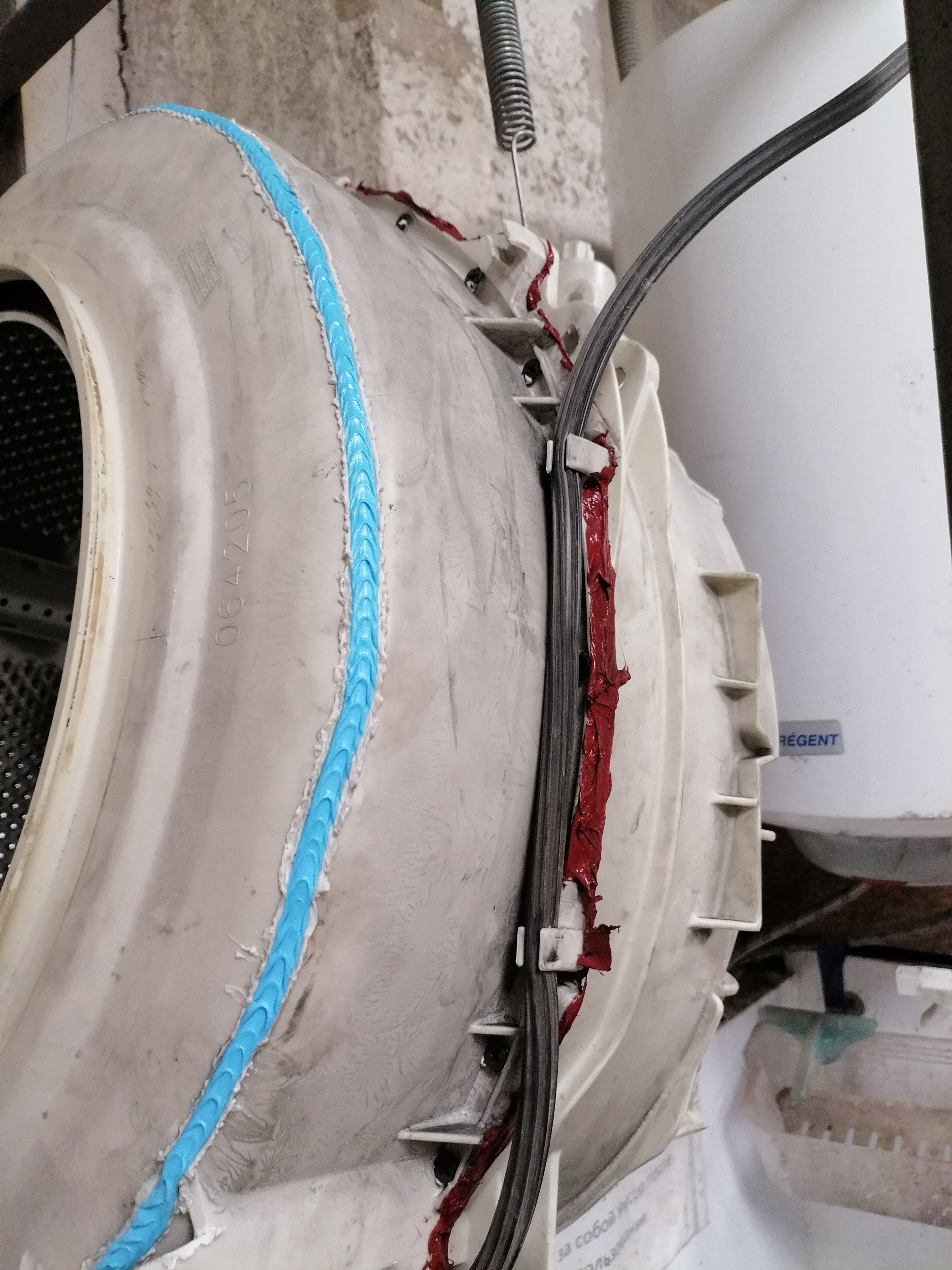 К нам в мастерскую сегодня попал бак стиральной машины индезит. Дважды восстановленный в нашей же мастерской. Один раз делал другой сотрудник 5 лет назад, когда ещё не был разработан метод пайки неразборных баков.