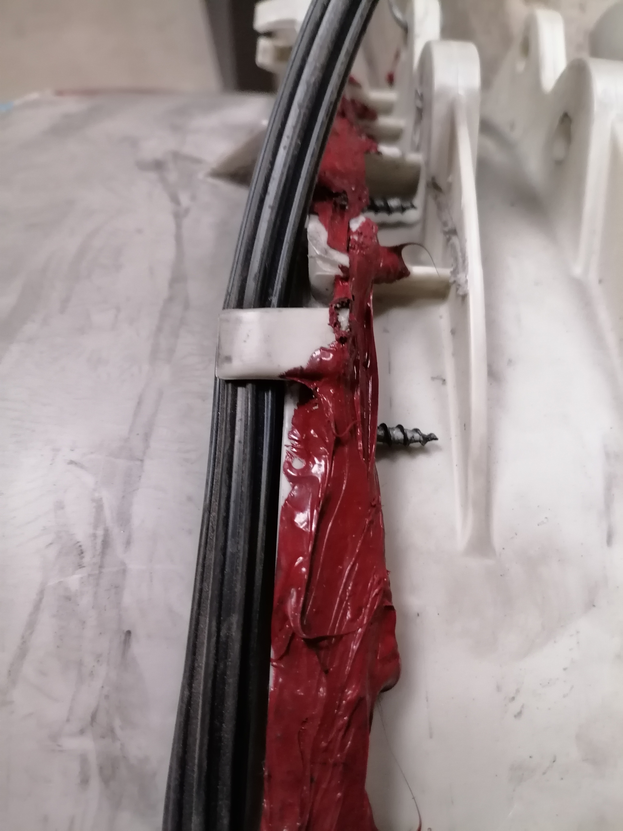 И работали мы тогда ещё по такой схеме. Бак разрезался болгаркой по заводскому шву. Затем зачищался, обезжиривался заливался герметиком и с помощью саморезов стягивался.