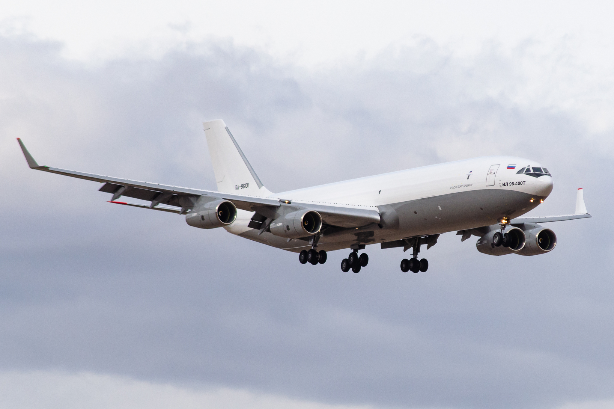 Один из двух грузовых Ил-96. Модификация пассажирского Ил-96-300, которая получила удлиненный фюзеляж и боковую дверь для грузов.
