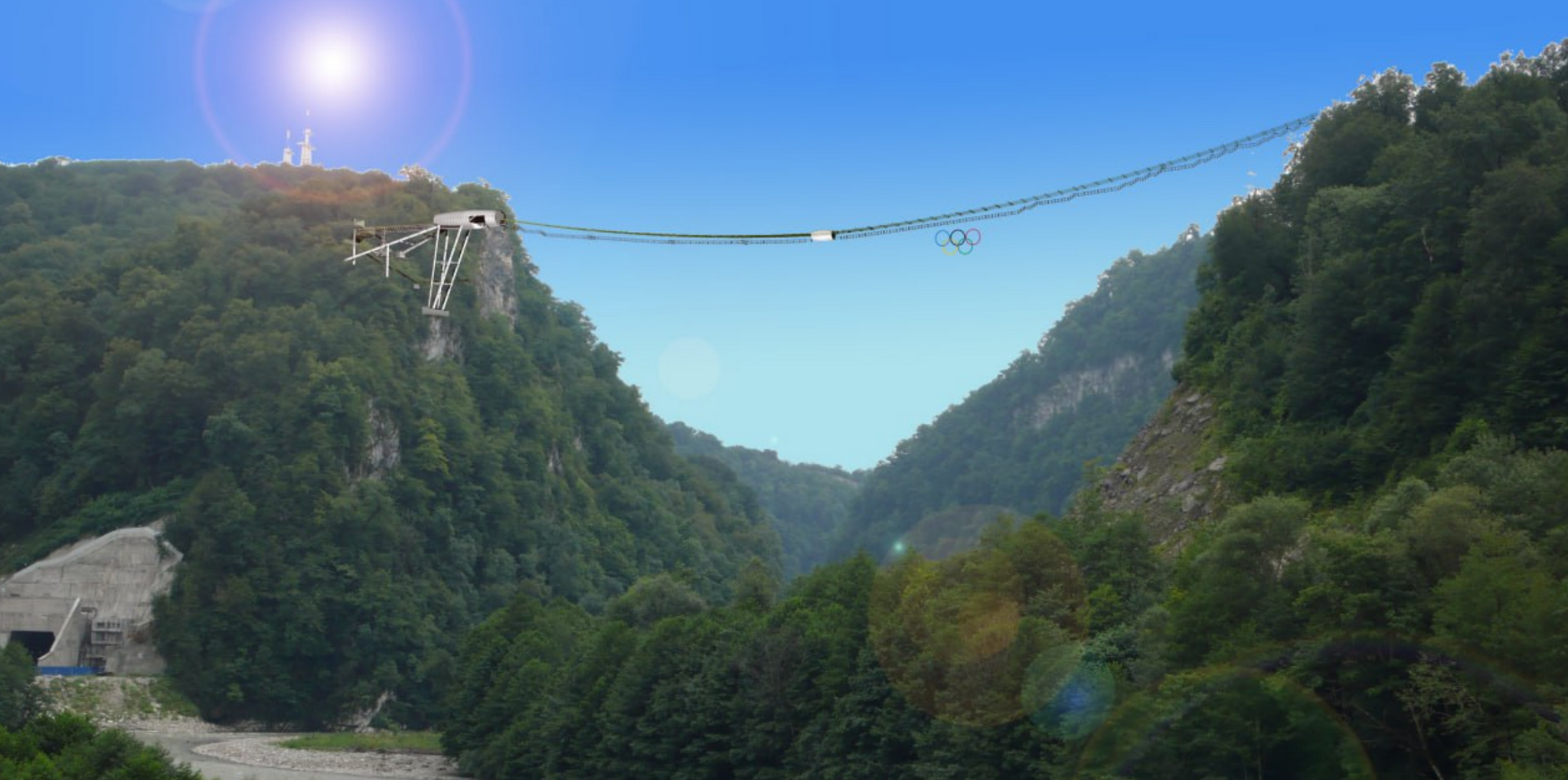 В нашем случае задача усложнялась, необходимо было меду двух горных массивов натянуть вантовый мост, над ущельем с горной рекой. Мало того, что в Сочи колебания земной поверхности могут достигать 9 балов, горные массивы в зоне строительства имеют карстовый ландшафт, с возможным провалом воронки 3 метра. Участок не имел подъездов, с твёрдым покрытием. Так же нам необходимо было успеть всё спроектировать, построить и запустить к Сочинской олимпиаде 2014 года.