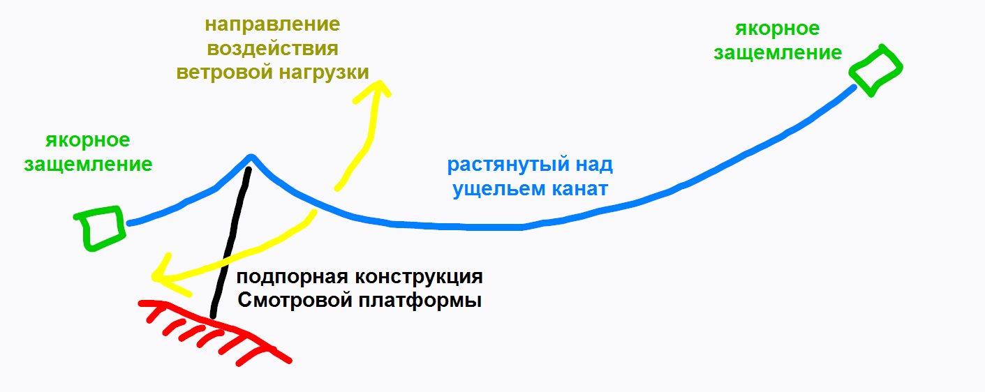 Эксперты усомнились в устойчивости, был риск раскачивания и заваливания на бок, подпорной конструкции смотровой площадки. Первоначальная конструкция не предполагала страховочных упоров на исключительные порывы ветра внутри ущелья.