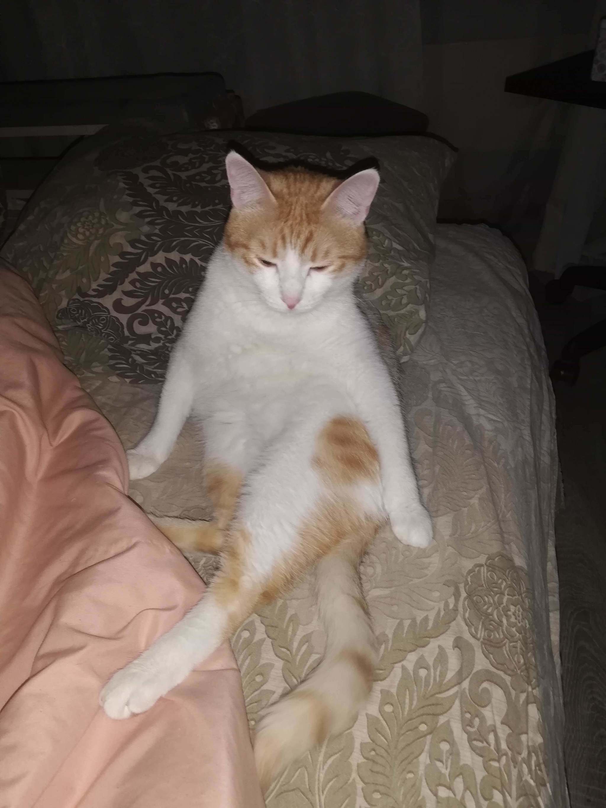Шоб вы знали аристократы всегда так спят)) просто устал после того как поел, ну а фото доказательство элегантности кота.