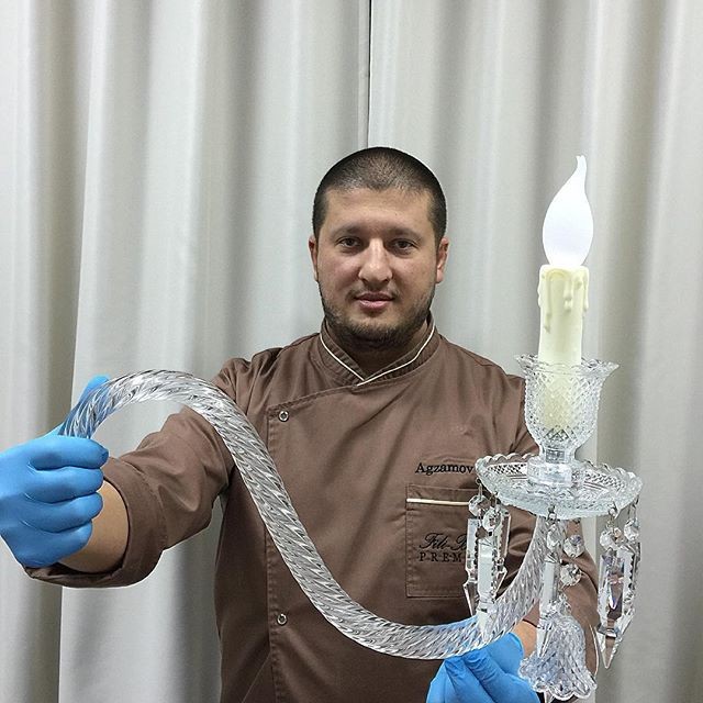Примечательна и история автора. Ренат Агзамов, чемпион России по боксу и чемпион России по кондитерскому искусству. Окончив спортивную карьеру, Ренат стал шефом-кондитером и создал уникальную школу по кондитерскому мастерству. Увлекается ледовой скульптурой. Наверно, поэтому и в его кондитерских шедеврах часто можно увидеть лед - тоже съедобный (карамель). Причем она подсвечивается