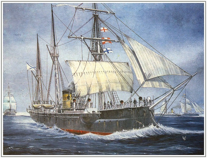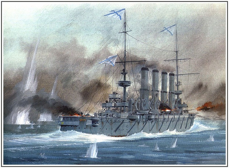 Бронепалубный крейсер 1 ранга "Варяг", акварель художника-мариниста В.С. Емишева