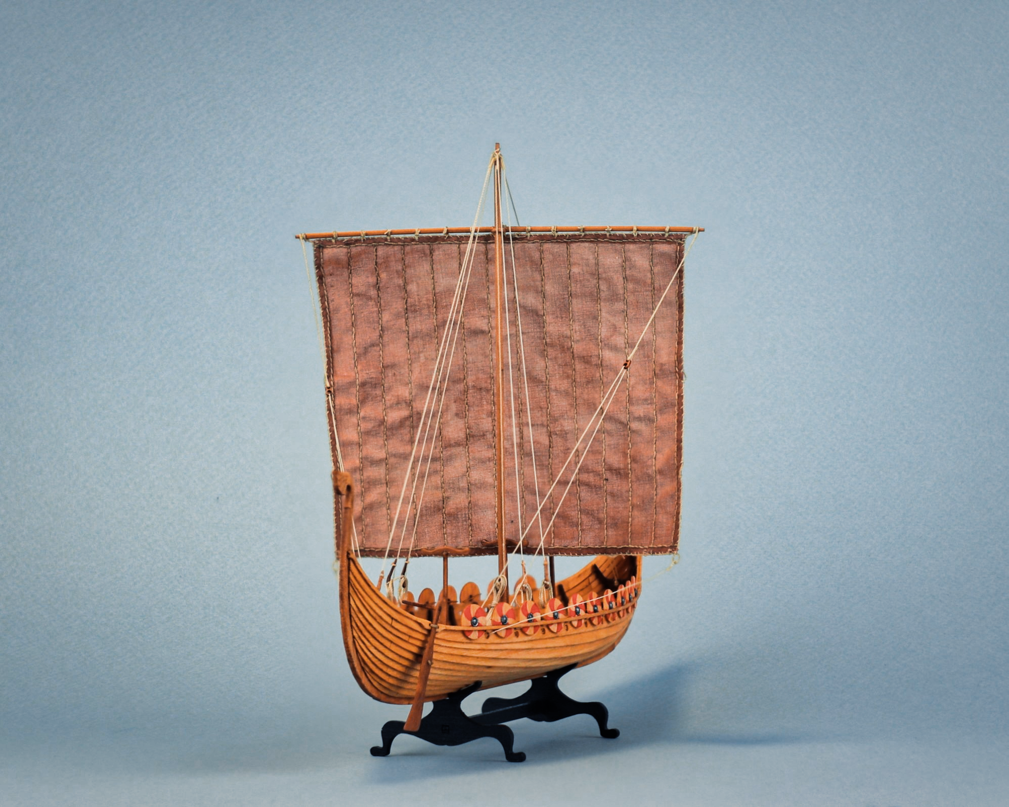 Закончил я наконец эту модель. Модель из дерева, покрыта льняным маслом для дерева. Стройка длилась долго, но в основном из-за паруса с такелажем. Шил, бросал, снова шил) На модели не первый вариант, все таки и ткань и нити специфичные. Да и опыт такой первый. Покрашен морилкой + чай)