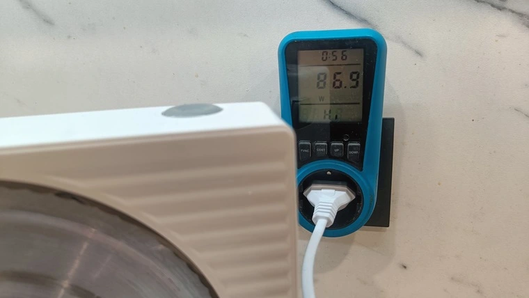 В номинальном режиме работы без нарезки продуктов устройство потребляет около 60 Вт электроэнергии, а в моменты нарезки потребление может вырасти до 87 Вт. Это не много и говорит, что устройство не испытывает больших нагрузок во время работы.