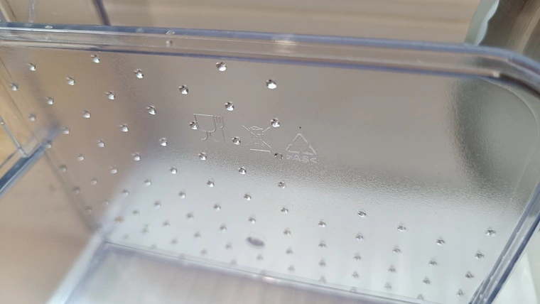 Платформа для поддона складная, а вот остальные части навесные и устанавливаются перед самой нарезкой. Все они выполнены из качественного пищевого пластика и безвредны для человека. К примеру, одна из маркировок на фиксаторе продуктов.