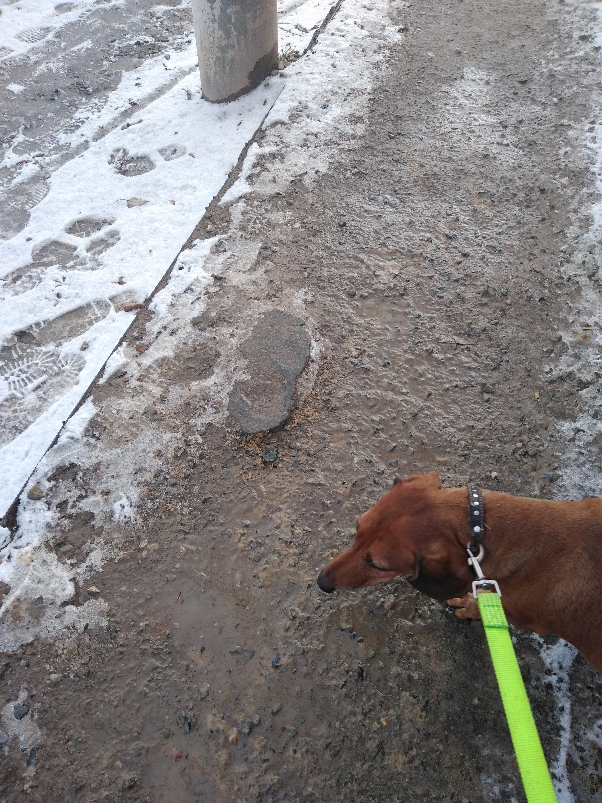 Смотрелось это, конечно не очень,гладкая,ровная поверхность тротуара и тут бац, чьих то три вдавленных в глубину дорожки отпечатка подошвы ботинок.