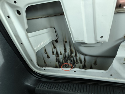 Работали спотером, вытягивали вмятину, соответственно скорее всего на этом месте снаружи есть шпаклевка и окрас данной детали.