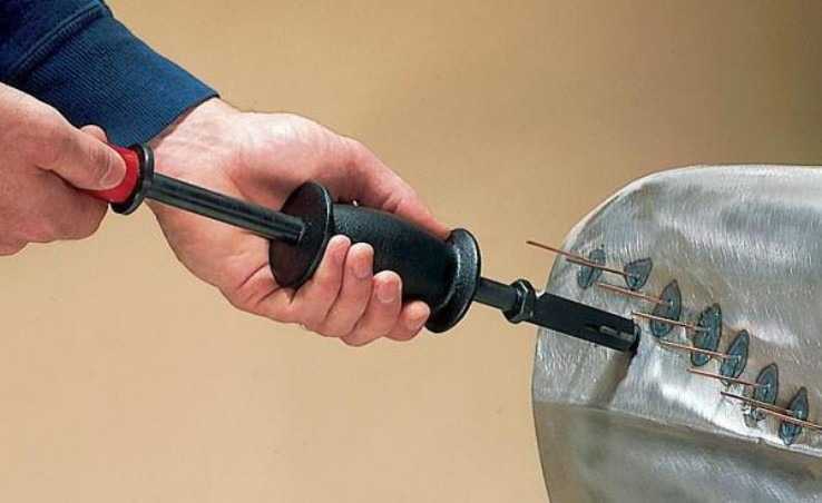 Он по принципу сварки прихватывает специальные крепления, за которые металл вытягивается обратно.