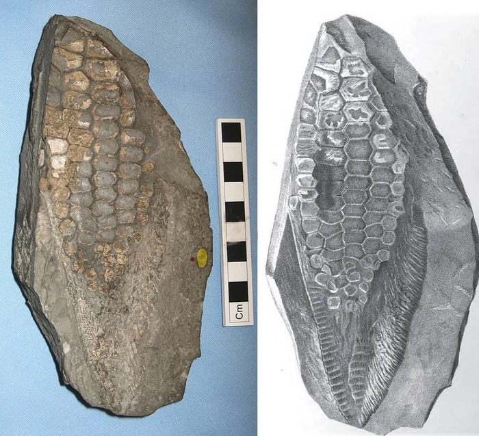 Отпечаток мягких тканей ихтиозавра, сохранённый вместе с окаменелыми остатками переднего плавника.