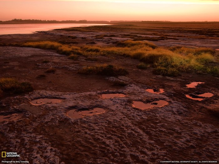 В Аравийской пустыне в 2012 году были обнаружены следы древних хоботных, прошедших по грязи около 7 млн лет назад. Судя по отпечаткам, стадо вело себя вполне современным образом: взрослые мужские особи шли своей собственной тропой, а остальные следовали за лидером женского пола. Иллюстратор исходил из предположения, что следы оставили представители вида Stegotetrabelodon syrticus. На переднем плане — самка-вождь. (Изображение Mauricio Antón.).