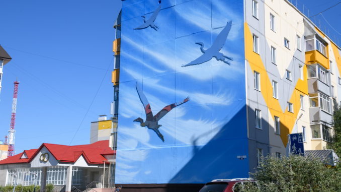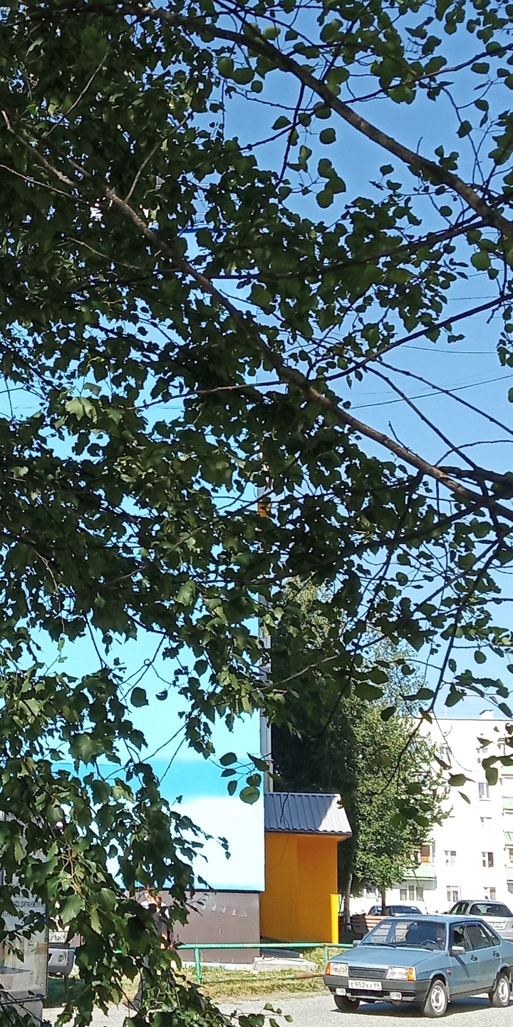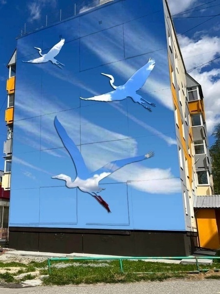 Это фото я сделал в 2023 году в Ноябрьске. Мы тогда там три мурала делали (один с банками я выкладывал ранее). Настолько круто художник нарисовал небо, что в какой то момент стена стала сливается... с небом)