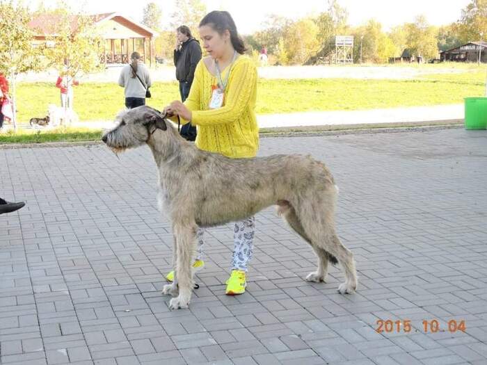 Дело в том, что ирландские волкодавы, как и все собаки гигантских пород, растут совершенно стремительно, но вот взрослеют и матереют очень медленно. В год - это смешной нелепый щеночек, в два - тощий подросток. Только после трёх лет волкодав превращается во взрослого, матёрого пса.