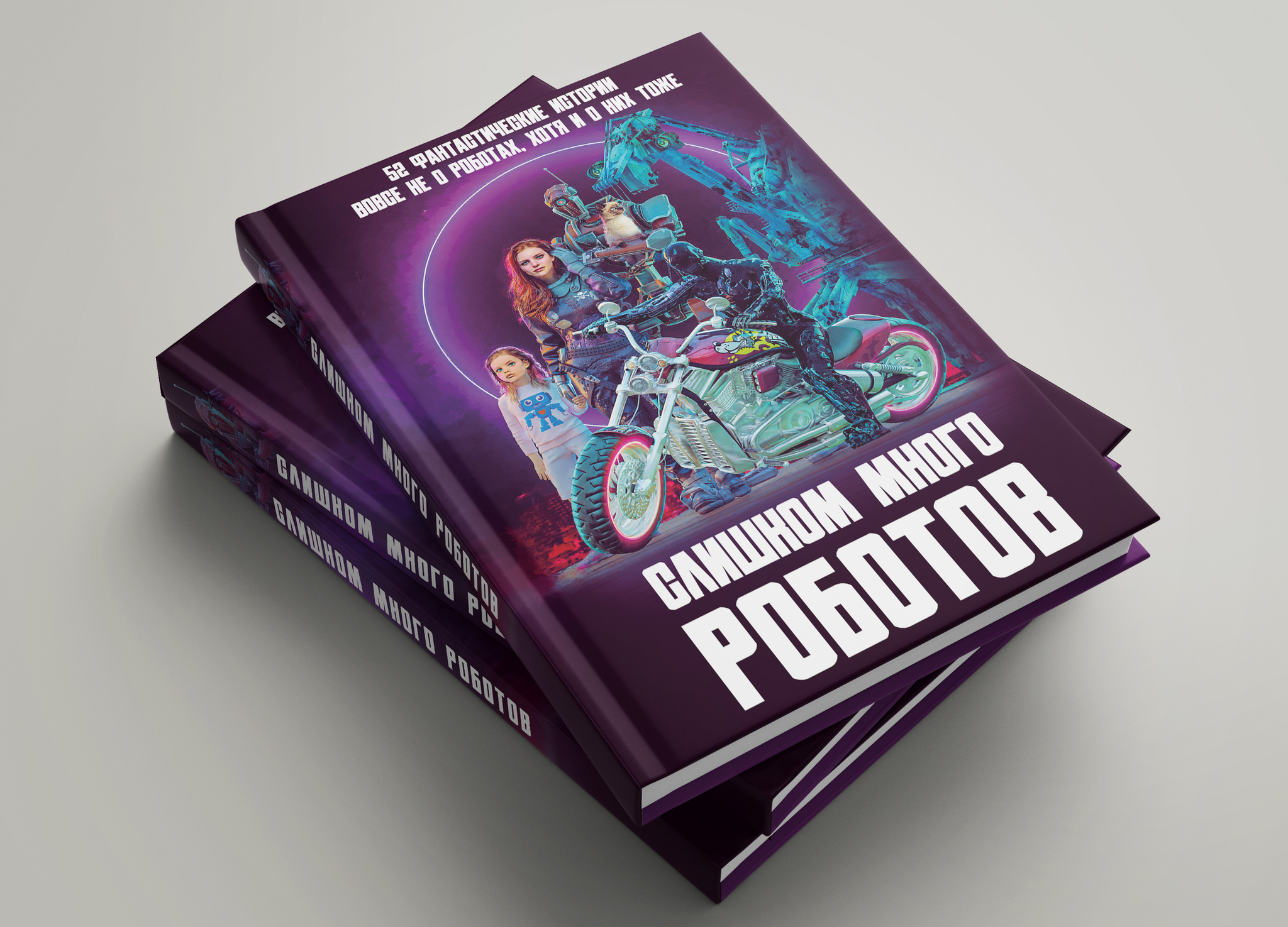 Моя иллюстрация для обложки сборника коротких фантастических рассказов "Слишком много роботов". Заказчик - крафтовый литературный журнал "Рассказы". По сути это спецвыпуск журнала, только в твёрдой обложке.
