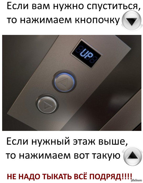 Как же меня выбешивают те кто нажмет обе кнопки, а потом спрашивает "едете вниз или вверх?".