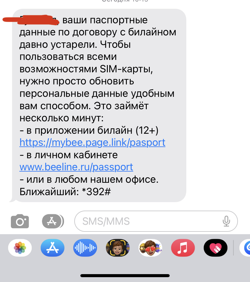 Пришла давеча вот такая смска от Билайна (меняла недавно паспорт (украли), Билайну об этом персонально не сообщала)