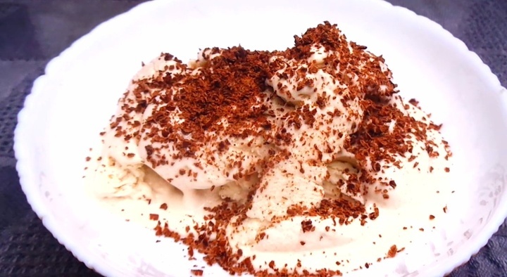 Спустя время, мороженое можно кушать, мороженое получается сливочное с банановый вкусом, нежное и вкусное. При подаче, мороженое можно посыпать натертый шоколадом. Приятного аппетита.