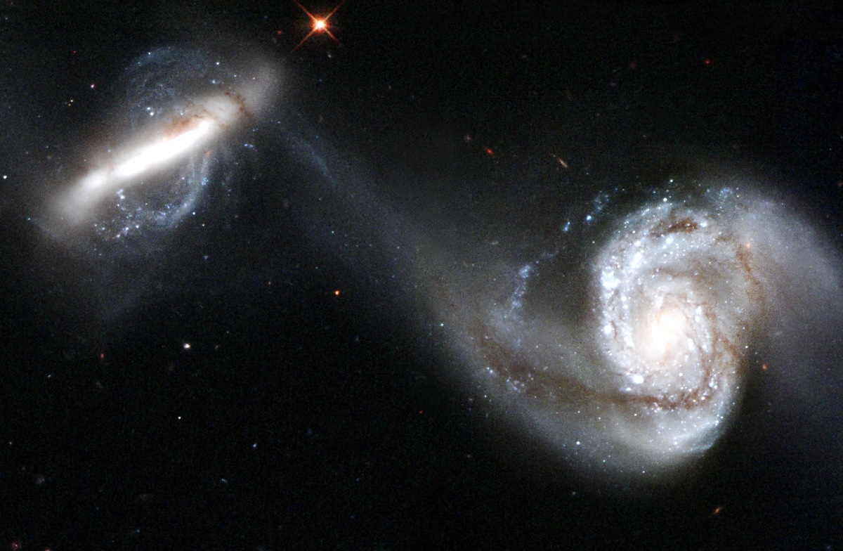 Слияние двух галактик. Есть ли что то более завораживающее, грандиозное по масштабам? Двух галактик, которые миллиарды лет жили своей жизнью. И вдруг они попали в зону притяжения друг друга и начали сближаться. Не обращая внимания на другие рядом летящие звезды и блуждающие черные дыры, которых было множество. Они тянулись друг к другу сквозь космическую пыль. Но все же не хотели терять свою свободу в этом бесконечном космосе. И ничто вроде не могло помешать этому фантастическому явлению. Они хотели быть взаимокружащимися спутниками, один с синим оттенком, другая с желтым. Но так не бывает, законы физики безжалостны. Если нет более сильного воздействия. Которое как безумный космический ураган, не подчиняющийся им, неподвластный их стремлениям, их движению друг к другу пролетел между ними. Их звезды потеряли свои траектории, смешались внутри своих скоплений и теперь с трудом выходили на свои орбиты. А беспощадный смерчь помчался дальше, ставить на место других, которые не хотят подчиняться законам мироздания. Но закончится ли на этом их история?