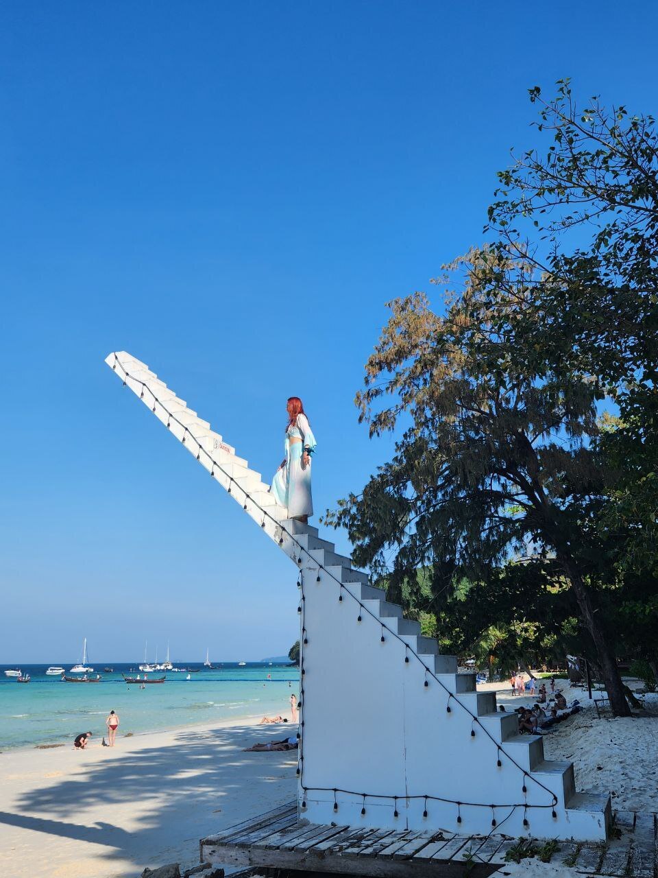 Хотя интерьер кажется простым с большим количеством солнечного света, снаружи кафе устроено по-другому. Во дворе кафе есть лестница «Лестница в небо» или «лестница в небо». Лестницы устроены высоко и без перил, отчего создается впечатление, что это путь в рай. Фотографии, сделанные с этого места, очень уникальны и эстетичны .