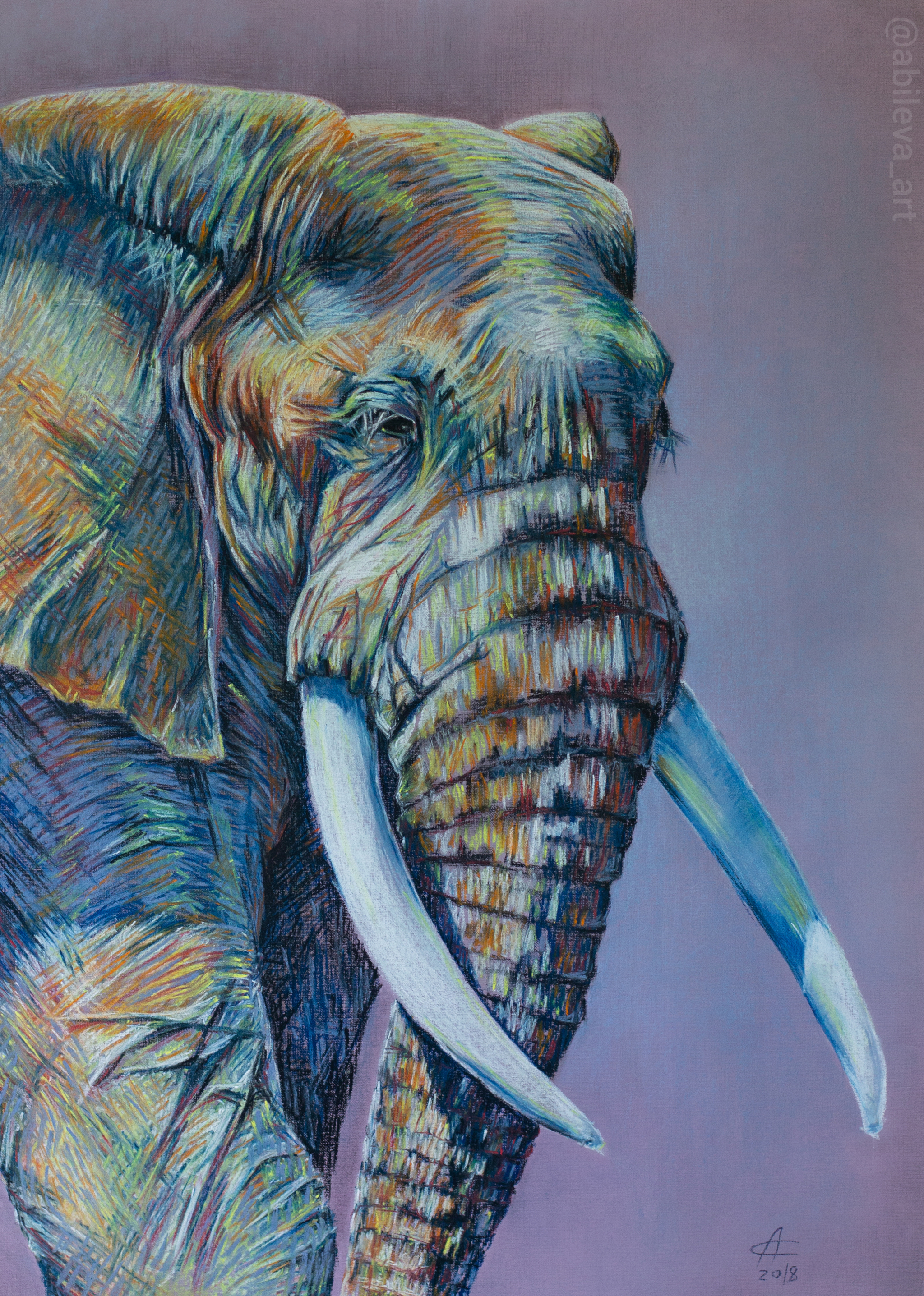 Слон, пастель