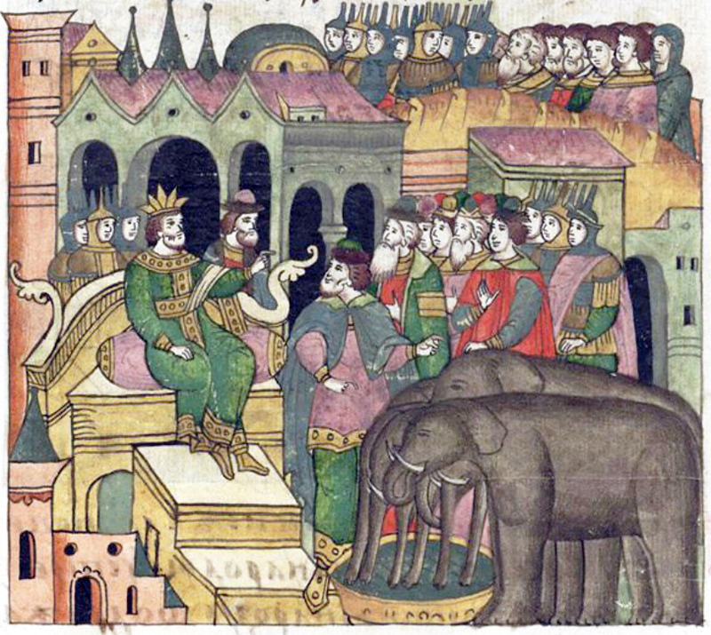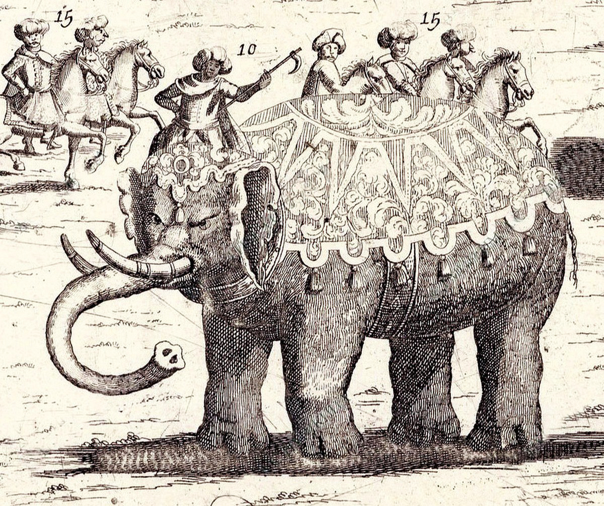 Век за веком слоны шли через всю Россию, и, что самое удивительное, доходили по назначению. Первым, как гласят летописи, был слон (или два слона — тут данные расходятся) Ивана IV. Слон был прислан из Персии, от иранского шаха Тахмаспа, в знак уважения и благодарности за пару дюжин русских пушек и мешки пороха, которые привезло в Персию русское посольство. Иранские шахи — они такие. Вечно нуждаются в пушках, а отдариться норовят слонами. К слону, впрочем, прилагался и человек, «арап в халате и синей чалме», который кое-как умел управляться с животным.