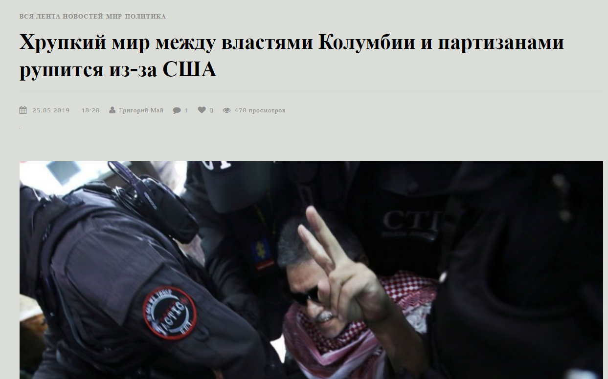 Но зачем США дать повод к рестарту партизанской войны в этой стране? Тем более рядом с Венесуэлой? Неужели настолько велико желание получить очередной профит с рестарта гражданской войны?!