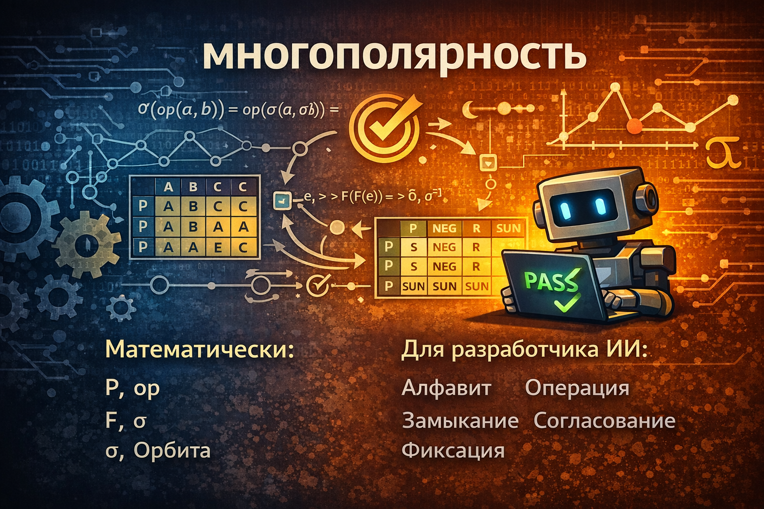 Я опубликовал словарь многополярности в форме, которая подходит и математику, и разработчику ИИ: каждое понятие имеет строгую фиксацию и инженерное прочтение, а ключевые механизмы (замыкание, симметрии, орбитальная фиксация, отчёты, валидаторы) не “обсуждаются”, а проверяются прогоном.